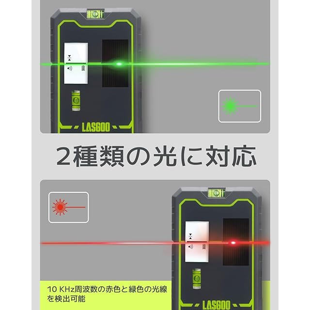 赤と緑のレーザーに対応: レーザーレベルがパルスモードであることを確認してください!レシーバーはパルス周波数10KHzの赤と緑のレーザー信号を検出でき、最大50mの距離で動作するため、オープンスペースでも確実に検出できる