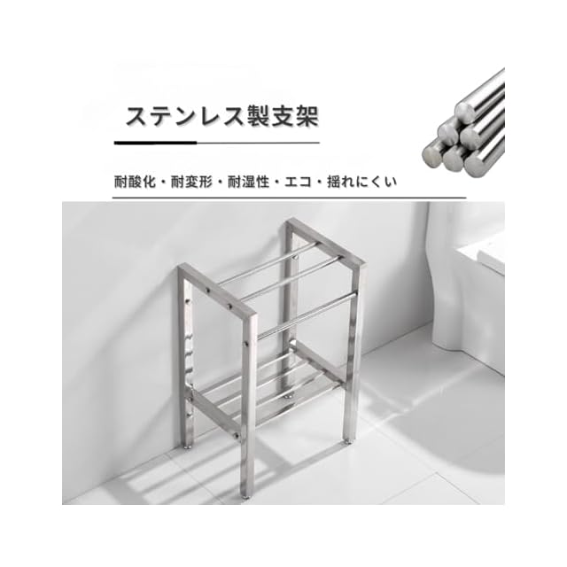 便利な収納スペース:支架部分にはタオルや小物を置けるスペースが設けられており、使い勝手の良いデザインになっています。清潔なタオルをすぐ手元に置くことができ、便利です。