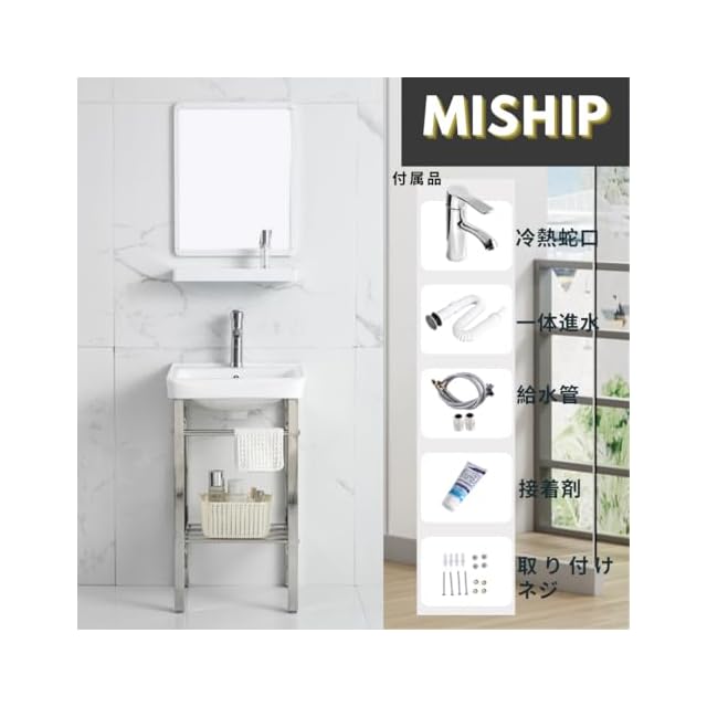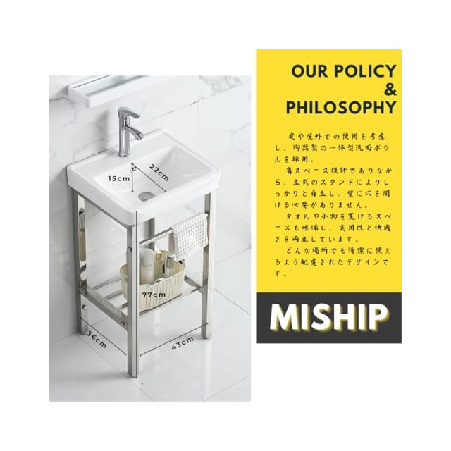MISHIP ガーデンシンク 洗面台 陶器製 長さ43×幅36×高さ77cm 温水および冷水対応 蛇口付き 簡易シンク 屋外 家庭用 コンパクト 工場 農園 ステンレスシンク シングルシンク 簡単取付