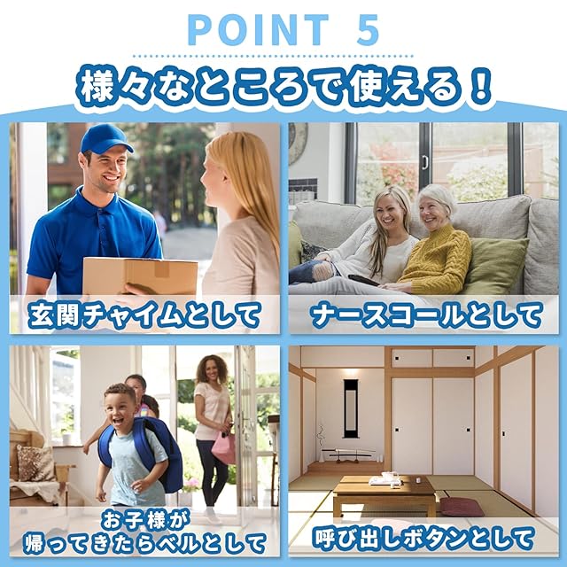 【無線チャイムが付属】無料のドアベルチャイムをダイニングルーム、キッチン、または中庭に設置して、誰かがドアベルを鳴らしたときに聞きます。 1 つのスマート ドアホンを複数の屋内チャイムとペアリングできます。