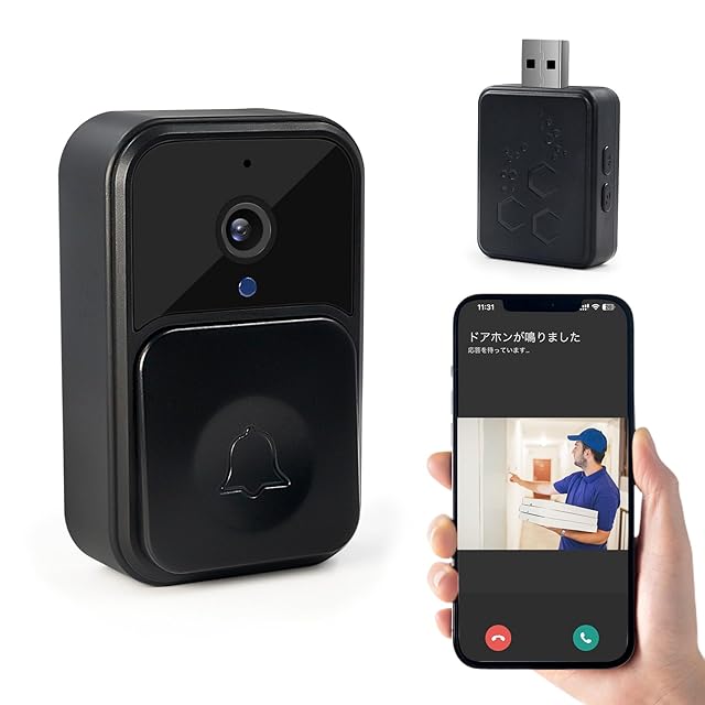 SULUWU スマートドアベル ビデオドアベル インターホン スマホ連動 ドアホン ワイヤレス 工事不要 ビデオドアホン WIFI 双方向音声 電池式 カメラ付き ワイヤレスチャイム 呼び出しチャイム 防犯カメラ iOS Android対応 日本語説明書付 ドアベルキット