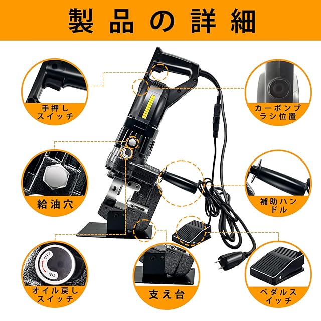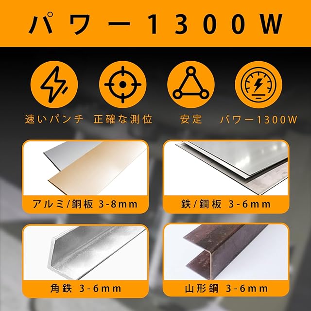 電動油圧パンチャー 強力 10t パンチダイ5種付 φ4~20mm 穴あけ工具 1300W AC100V バッテリ 山形鋼対応 チャネルスチール 溝鋼対応 Iビーム パンチ 工具 鋼板 銅板 鉄板 アルミニウム板 用途7種類以上 穴あけパンチ 収納ケース付き 110v 通常のパラグラフ