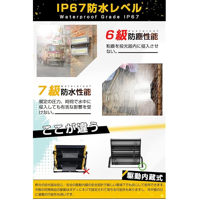 ●防水レベル:IP67(防塵6級:粉塵が中に入らない、防水7級:豪雨、清潔などの水流は完全に影響なし)●光束減衰率:二年以内5%●耐雷サージ:15KV●適温性:-120℃の低温~140℃の高温まで
