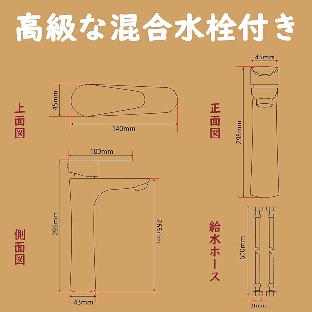 【商品サイズ&設置説明】:洗面器のサイズ:370*260*110mm、重さ:7kg、排水口径:48mm。蛇口の取り付け穴径:35mm、水栓の取り付けホースの規格:G1/2ナッツ(21mm)。 この手洗いボウルはホテル、家、会社、ビル、浴室、トイレなどに適用します。商品は設置が簡単なので、日本語取扱説明書どおりに設置すればでいいです。オシャレなデザインを与えています。