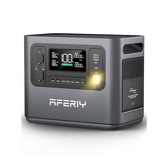 AFERIY ポータブル電源 1248Wh ぽーたふる電源 リン酸鉄 大容量 1.5時間満充電 10年長寿命 高出力 AC定格出力1200W「サージ2400W」 非常用電源 蓄電池 ポータブルバッテリー UPS機能付き AC/DC/USB 14出力ポート 純正弦波 AC100V 50Hz/60Hz対応 ソーラー充電 家庭用/キャンプ/アウトドア/車中泊/防災/地震台風 停電対策 防災協会推奨