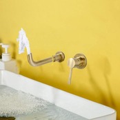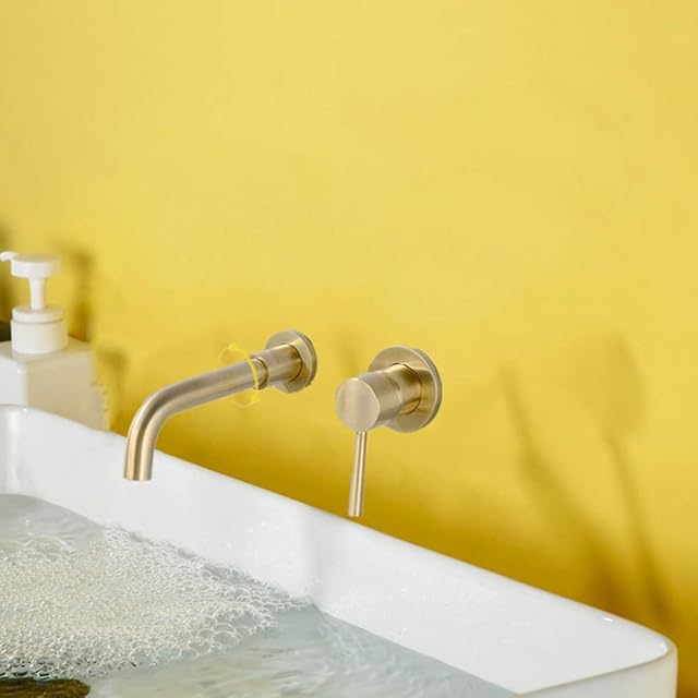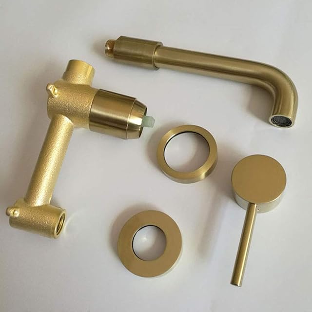 【洗練デザイン】洗練された多用途の壁付水栓、バス/洗面所/キッチンに対応。ゴールドの色は空間にアンティーク調を飾れる。陶器製洗面ボウルとは最も完璧な組み合わせで、使用してない時でも部屋ではまるで高級芸術品のようです。