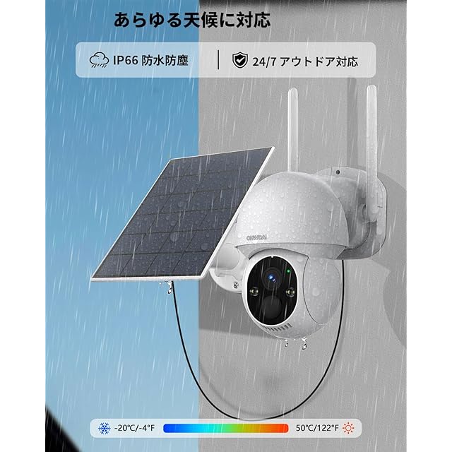 ✅{ソーラーパネル充電}ソーラーパネルが搭載されているため、太陽光で自動的にカメラに充電され、手動で充電する手間はかかりません。太陽光による給電で省エネにもなり、急にバッテリーが切れて録画が中断される心配もありません。さらに、USBでの充電も可能なので、状況に応じて充電方法を選べます。