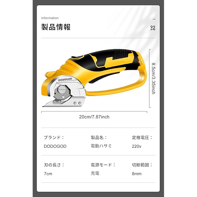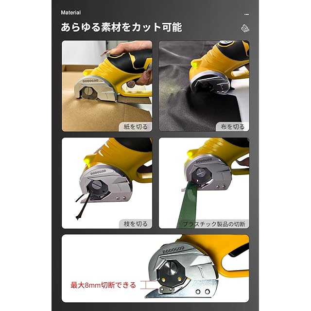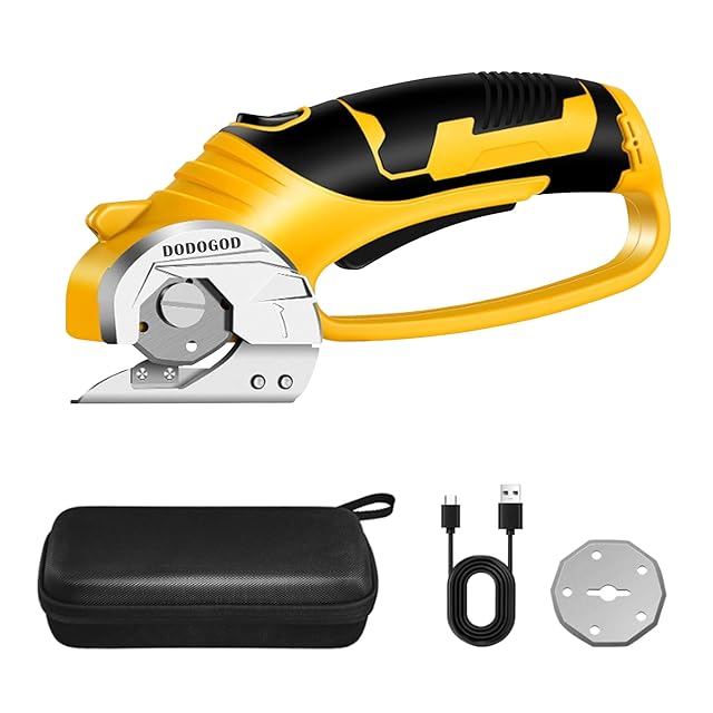 DODOGOD 電動カッター 電動マルチカッター ダンボールカッター 布カッター 充電式ハサミ コードレス マルチカッター 電動ハサミ (イエロー)