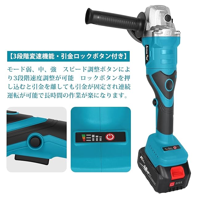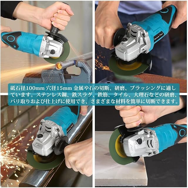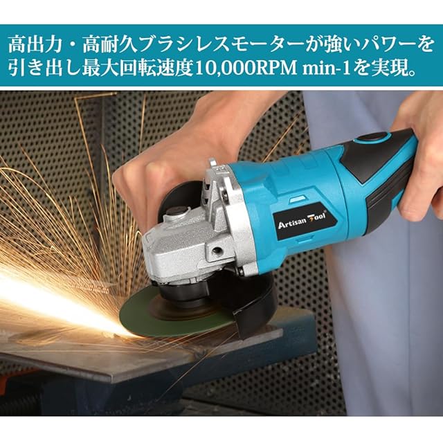 アルチザンツール【日本ブランド】充電式グラインダー ATGR01Bセット 90度回転 ONロック機能 ATGR01B 18Vマキタバッテリー使用可能 研磨 塗装 仕上 バリ・錆び落とし サビ 研削 切断 φ100mm ディスク・全長34cm ディスクグラインダー 3000mAh 即使用可能 フルセット マキタ互換品
