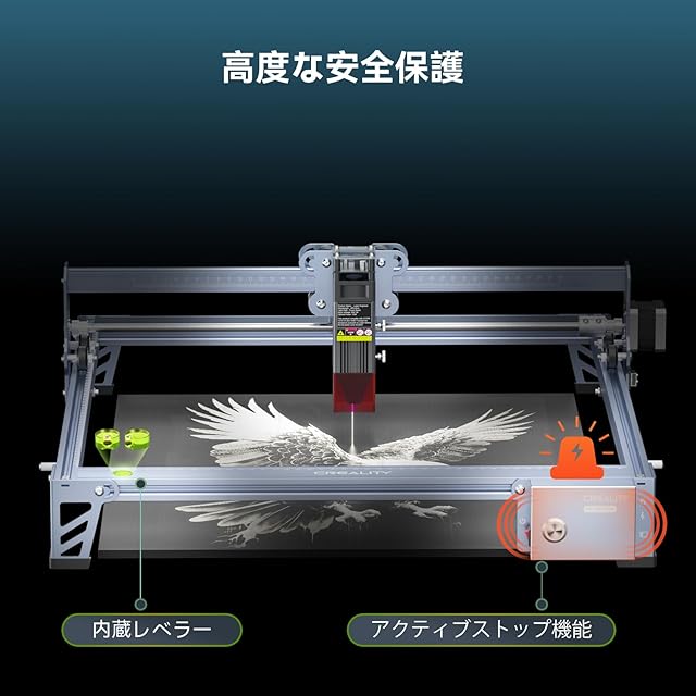 Creality Falcon 10W レーザー彫刻機 初心者向け 72Wレーザー加工機、0.06mm高精度 400mm×415mm作業領域 木材、金属、アクリル、ガラス、皮革用のレーザー彫刻機およびカッター機 レーザークラス2