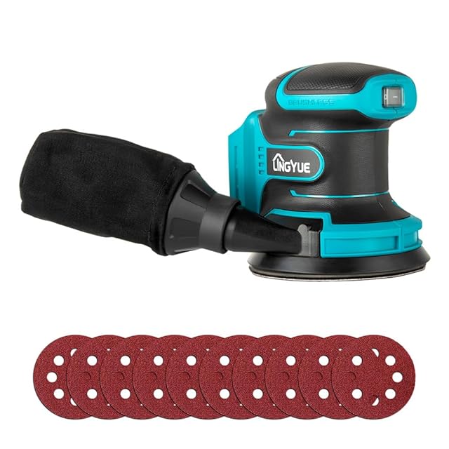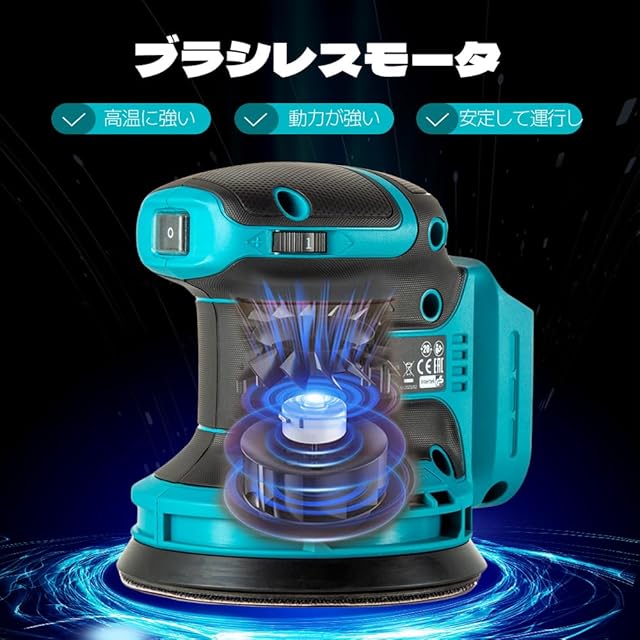 LINGYUE 充電式 125mm コードレスサンダー本体のみ 7000-12000/min ダイヤ式6段調速 ブラシレースモーターを採用した充電式ランダムオービットサンダ 18vマキタバッテリーに対応可能