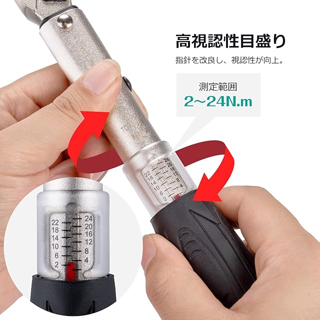 【視認性抜群】目盛りに差し色が使われている指針を採用し、トルク調整作業をより快適に。