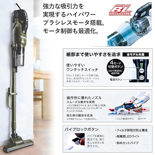 ノズル部の改良により滑るような操作感でプロの清掃から一般家庭まで、様々なシーンで活躍。 18Vバッテリは草刈機やインパクトドライバ等、様々なマキタ製品に共通で使用可能。