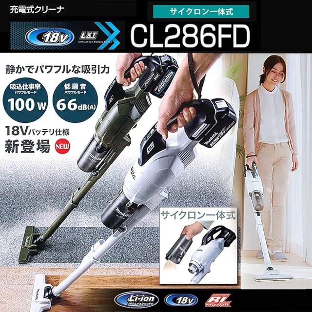 静かでパワフルな吸引。18V充電式クリーナ【CL286FDZW】(サイクロン一体式)本体のみ バッテリ・充電器別売【スノーホワイト】「サイクロン式」ゴミの量を目視フィルタ清掃頻度低減