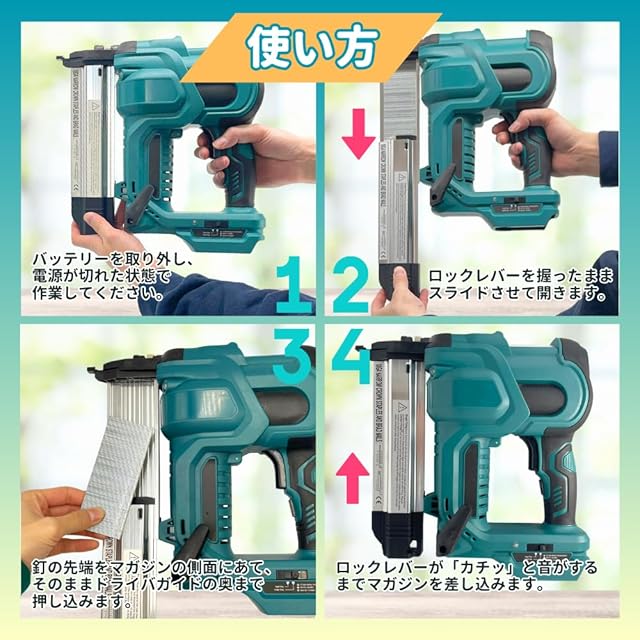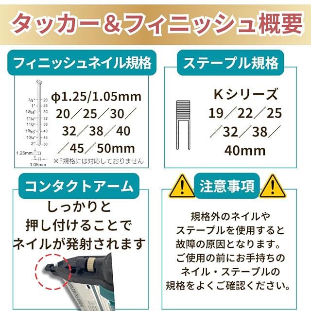 【注意】 つまりや故障の原因となるので必ず適合するピン及びステープルを使用してください。 バッテリー、充電器は別売り品となります。 互換製品につきバッテリーが装着しづらい場合がございますが不具合ではございません。 海外製品につき細かな擦れ等が見られる場合がございます。