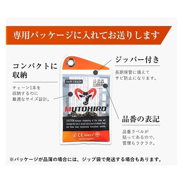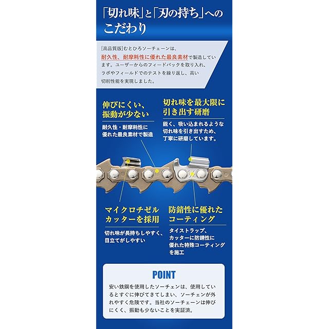 むとひろ製のチェーンソー替刃(チェーン刃)です。『むとひろ』は当店オリジナルブランドです。