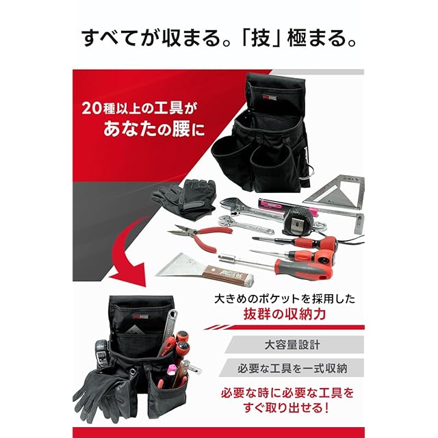 ✅【職人の誇りを、腰に巻く。】使いたいときに、使いたい道具を。ポケットの配置に拘り抜いた設計で取り出しやすい位置に道具を収納できます。もう工具を探す手間がかかりません。