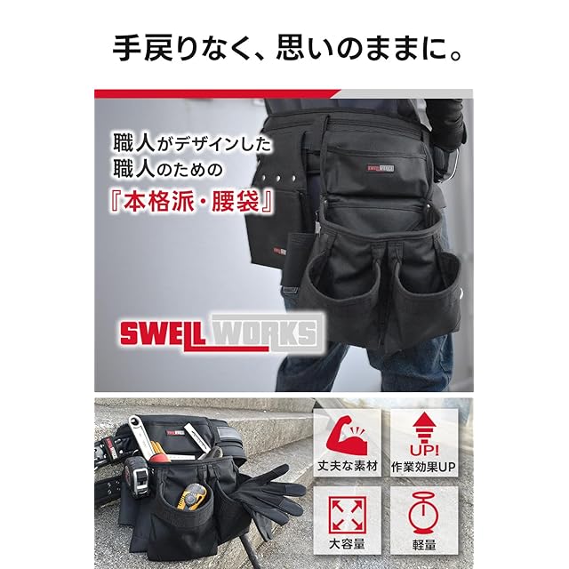 腰袋 釘袋 SWELLWORKS 職人向け 腰道具 大工 建築 釘袋 軽量 工具差し 電工 大容量 内装