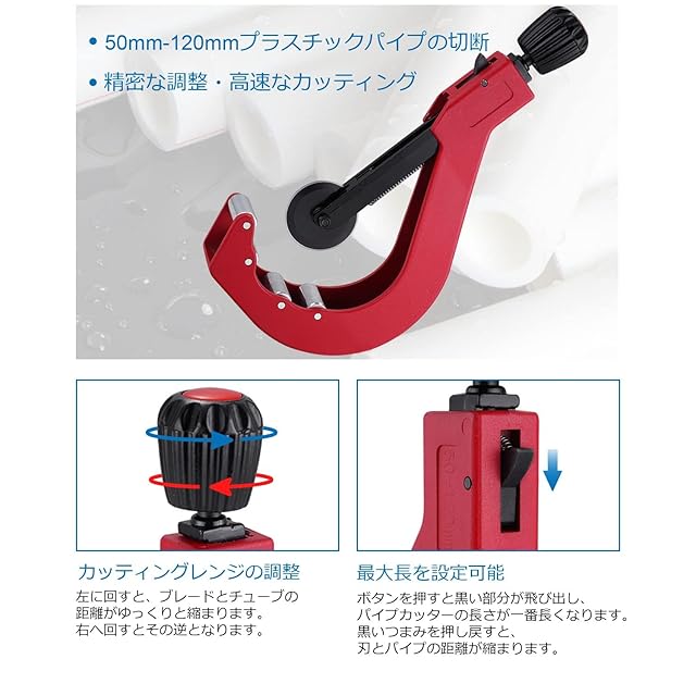 【切断能力50~120mm】銅管・薄肉ステンレス鋼管・PE・PPR・PVC・アルミ管・プラスチックパイプなどほとんどのパイプを簡単に切断できます。