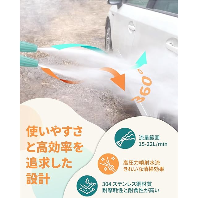 【高品質素材と抜群の耐久性】 二重回転ノズルは304ステンレス鋼、高品質のゴム、真鍮、合成繊維で製造されています。強力で耐久性があり、耐腐食性で漏れがありません。また、内部に備わったゴムシールがさらに漏れを防止します。実用的で信頼性の高いパートナーです。