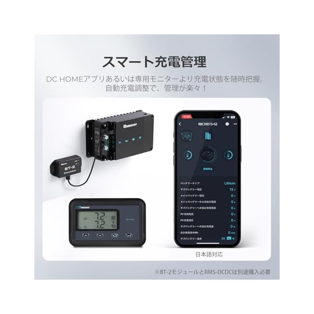 Renogy DCC 走行充電器12V 30A MPPTチャージコントローラー内蔵/アイソレータ ブラック
