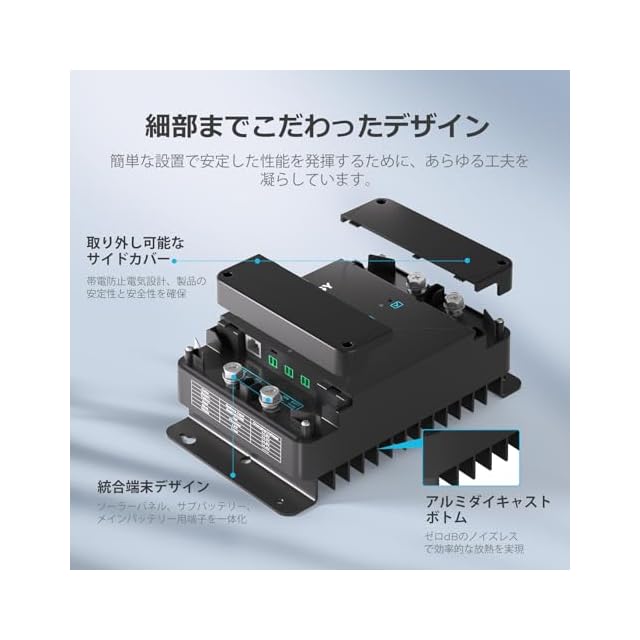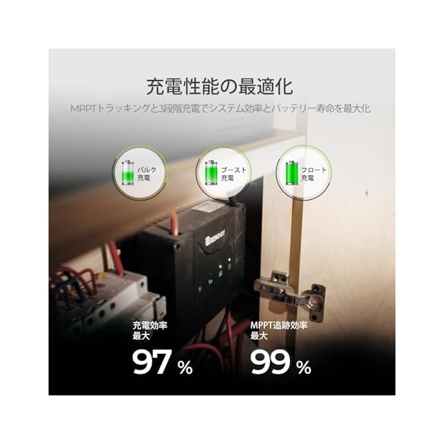 【スマート保護機能】過電圧保護、バッテリー温度保護、過電流保護、過熱保護、逆電流保護、ソーラーパネルおよびオルタネーター逆極性保護。または温度及び電圧補償機能により、バッテリー寿命を延長させ、システムのパフォーマンスを向上させます。