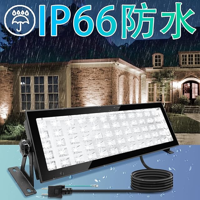 超高輝度6000K昼白色照明効果:このLED投光器は108粒の高輝度LEDチップで作っております。1200wの白熱ライトに相当する6000kの超高輝度昼白色光が実現できます!この LED 投光器は、ガレージ、庭、更にニーズによりもっと広いエリアの照明にも使用できます!