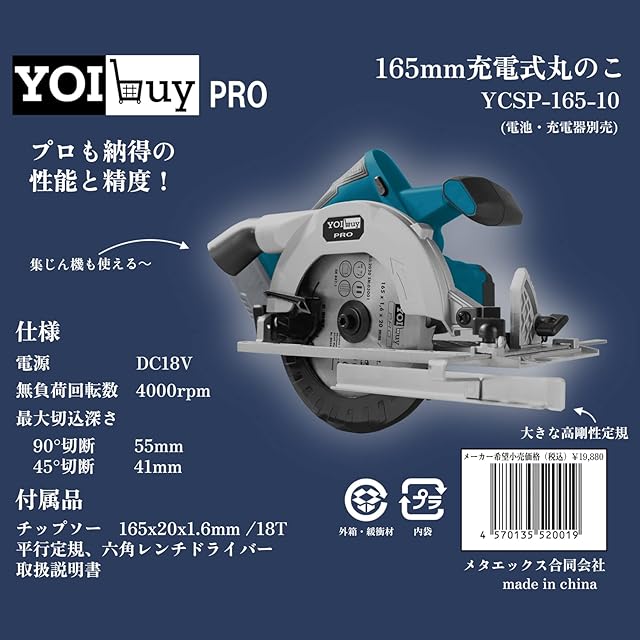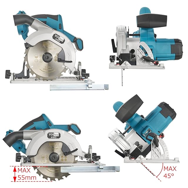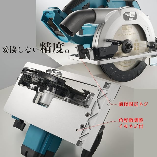 YOIbuy PRO 18V 充電式 165mm 丸のこ ブレーキ付き 高精度 アルミベース 集塵ノズルあり 平行定規付き 本体のみ(バッテリー充電器別売り) マキタ BL1860B 互換 コードレス 丸ノコ 国内正規品 1年メーカー保証 YCSP-165-10