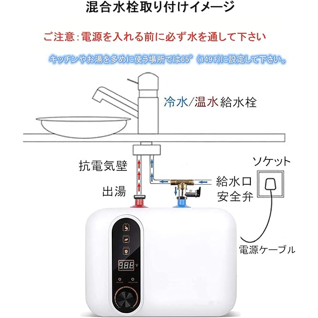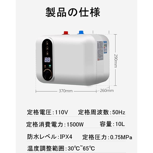 電気温水器 110V/1500W 小型電気温水器 30℃~65℃調節可 電気温水ヒーター 10L 大容量 電気給湯器 取り付けやすい 住宅向け キッチン・洗面台に適用