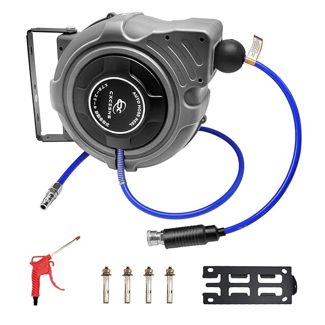CXCESNS エアホースリール 15m 壁掛け 天吊り式 自動巻取式 自動巻き上げ エアーリール オート180°回転可能 最高使用圧力12kgf/c ホース ブラケット付 引き込み式 空気圧工具 (外径φ10mm×内径6.5mm)