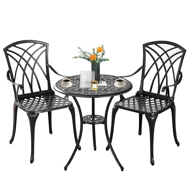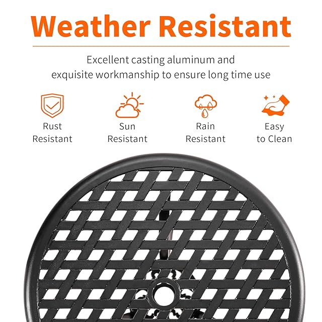 【防錆性と耐候性】: パティオビストロセット3点セットは、防錆性と防水コーティングを施した頑丈な鋳造アルミニウム製で、色あせせず、非常に軽量で全天候型の使用に適しております。