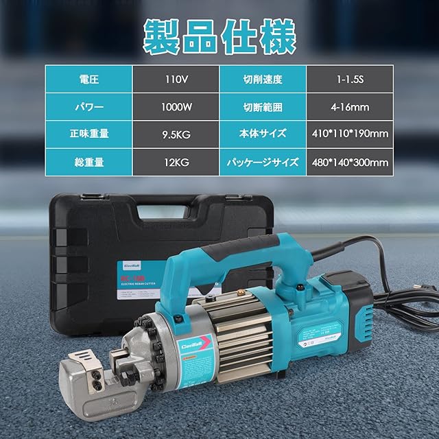 CENTALL 5/8 "電動油圧鉄筋カッター 1-1.5S切断速度、ポータブル鉄筋カッター、4-16mm #5鉄筋まで切断、1000w、120v/60hz (ブルー)
