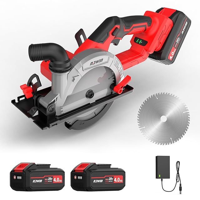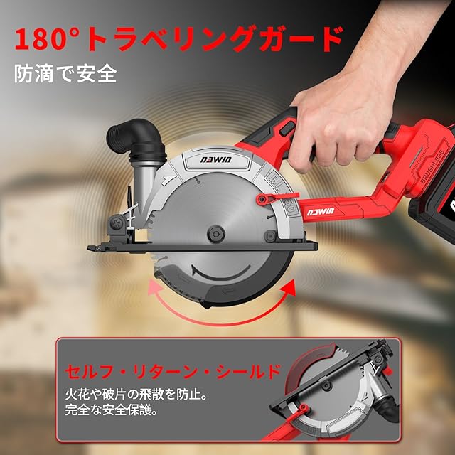 ナウィン 充電式丸ノコ 刃経150mm 4.0Ahバッテリー2個付 コードレス ブラシレスモーター 石材・木材・タイルの切断 電動丸ノコ マルノコ 丸鋸 丸のこ (刃径150)