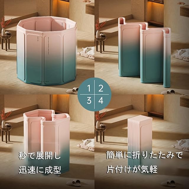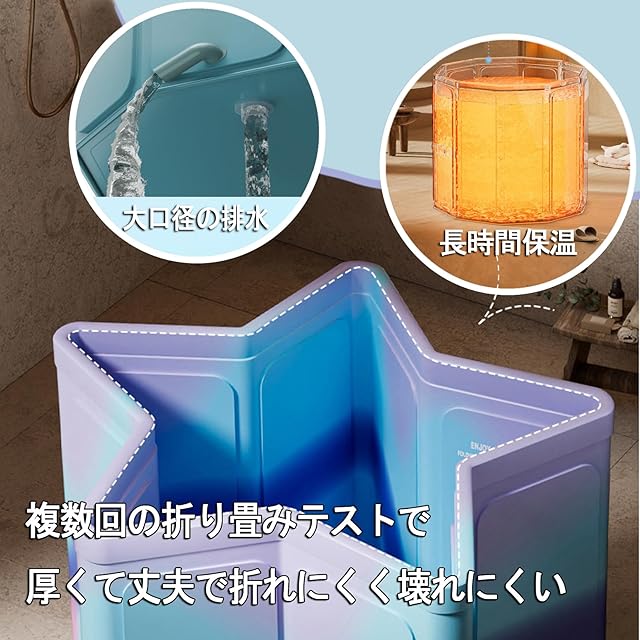 【簡単組み立て】複雑な設置手順が不要で、数秒で展開し、すぐに型にはめられる設計を採用し、わずか数秒でリラックスしたバスタイムを楽しむことができます。
