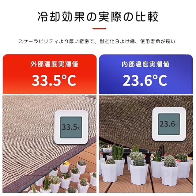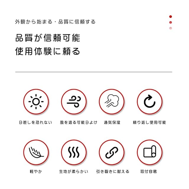 【高品質通気性材料】高密度ポリエチレン(HDPE)材料を使用して製造され、通気性が良く光を通さず、日光の照射熱を緩和します。形状記憶加工を施した遮光素材を採用し、型崩れや色あせがしにくく、美しく耐久性があります。汚れても水洗いができ、お手入れが簡単です。シーズンオフには折り畳んでコンパクトに収納できます。