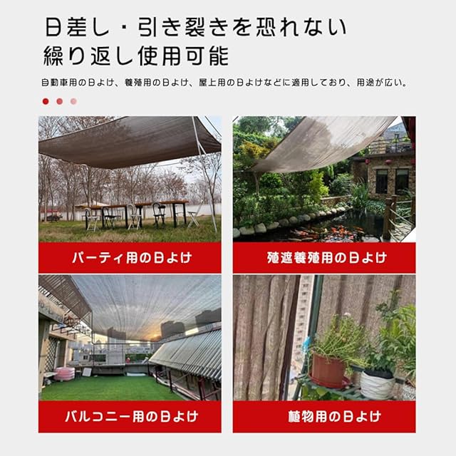 【幅広い用途】ベランダに取り付けるバルコニー シェードはプライバシーが保護されるベランダ・バルコニー向けのサンシェードです。サイズ展開は多くて、サイズに合わせて上部に付けることも前部でも問題ありません。カーペットや畳、家具などが日焼けで変色するを避けます!目かくしや日よけ、物の転落防止など用途は様々です。