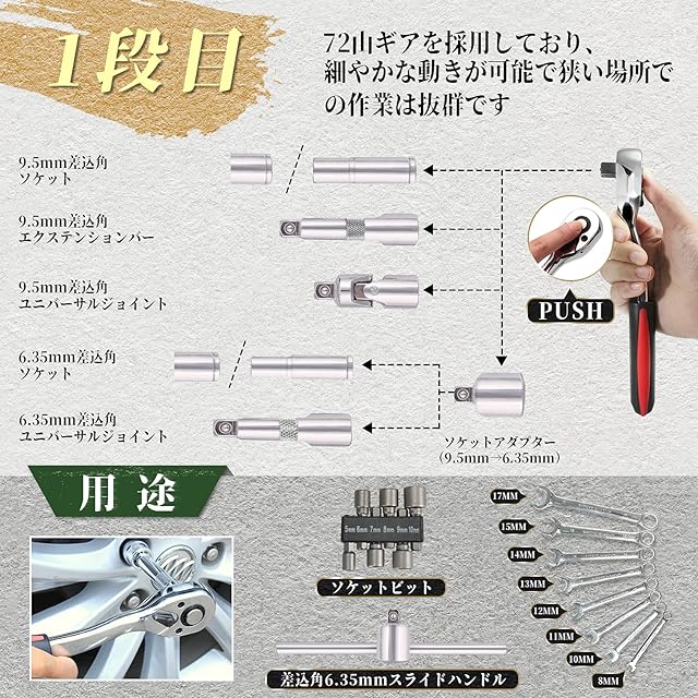 【高品質】強度、仕上げ、耐久性、使いやすさの業界標準テストをクリアしています。レンチやソケットなどの工具類はクロームバナジウム鋼使用で完全熱処理済です。最上部は柔らかいEVAスポンジを採用し、複数のツールをしっかり固着させながら、精密な工具に最大限の保護を提供します。