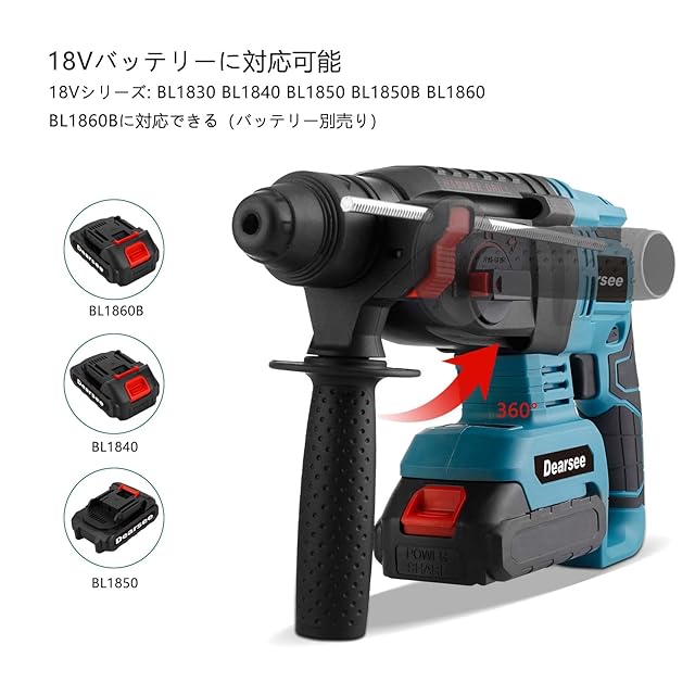 Dearsee コードレスハンマードリル 18V 充電式 ハンマードリル 電動ハンマー SDSプラスシャンク ハンマドリル/ハンマ/ドリルモード 18Vリチウムイオンバッテリー対応 BL1830 BL1840 BL1850 BL1850B BL1860 BL1860B【本体のみ】