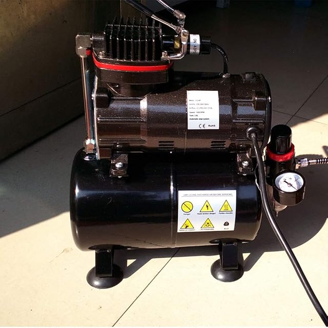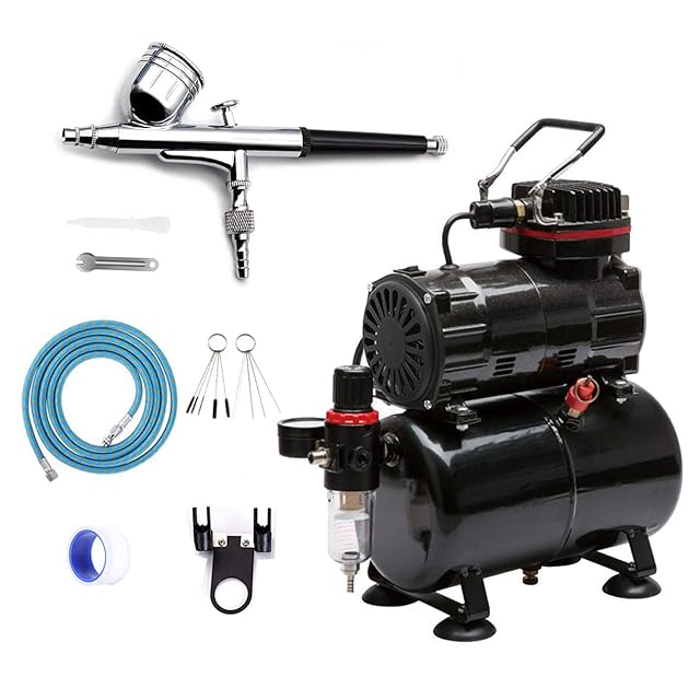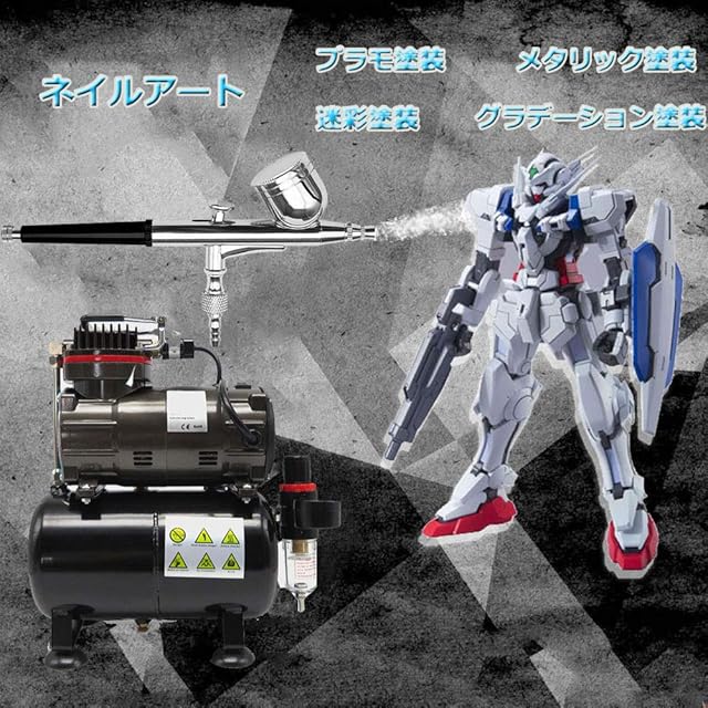☆【エアーブラシスターティングキット】ダブルアクション重力式エアブラシと3Lタンク付エアーブラシ用ミニエアーコンプレッサーとのスターターキット。