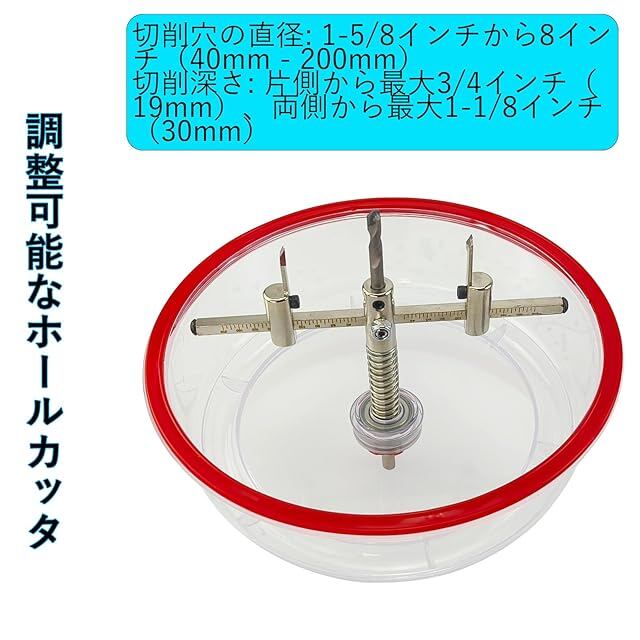 7Akiranoai ダウンライトカッターセット Φ40-200mm対応 ドリルドライバー 穴あけ 可変式の両刃ホールミリングカッター