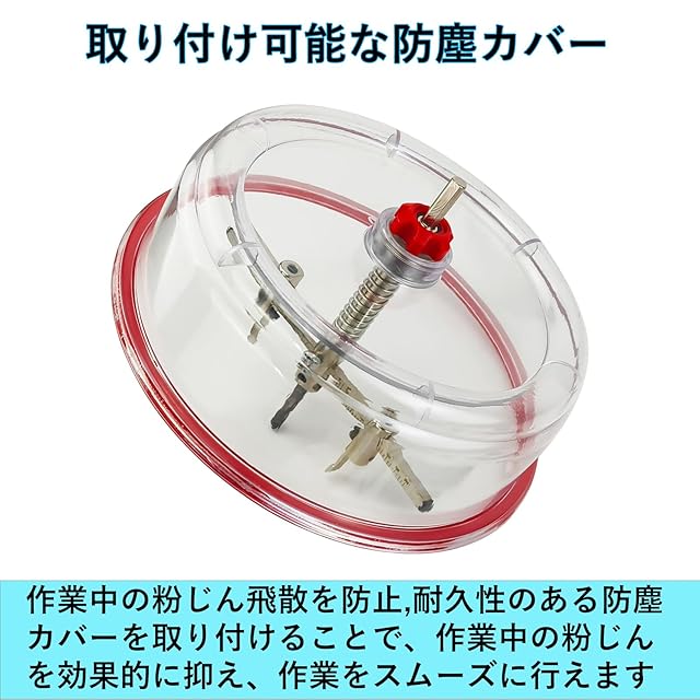 【安心設計】:革新的なデザインの調整可能なホールソーカッターセットはABSガードとゴムガスケットを備え、天井への穴あけ作業中にエッジの切屑を効果的に収集し、作業中の安全と便利さを向上させます。