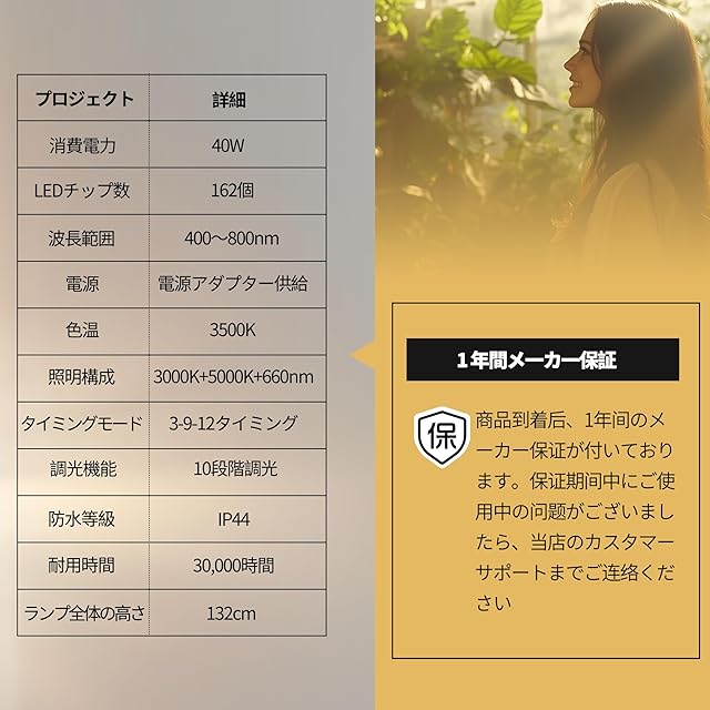 【3500Kの全光スペクトル】自然光に近い色温度で、全光スペクトル設計は植物の成長、開花およびその他の段階に適しており、植物の健康と成長速度を大幅に向上させます。