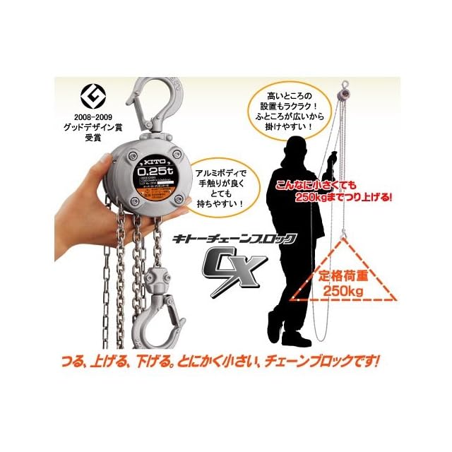 KITO(キトー) 手動チェーンブロック CX形 定格荷重250kg 揚程2.5m ハンドチェーン2m 小型・軽量 【選べる定格荷重】 CX003