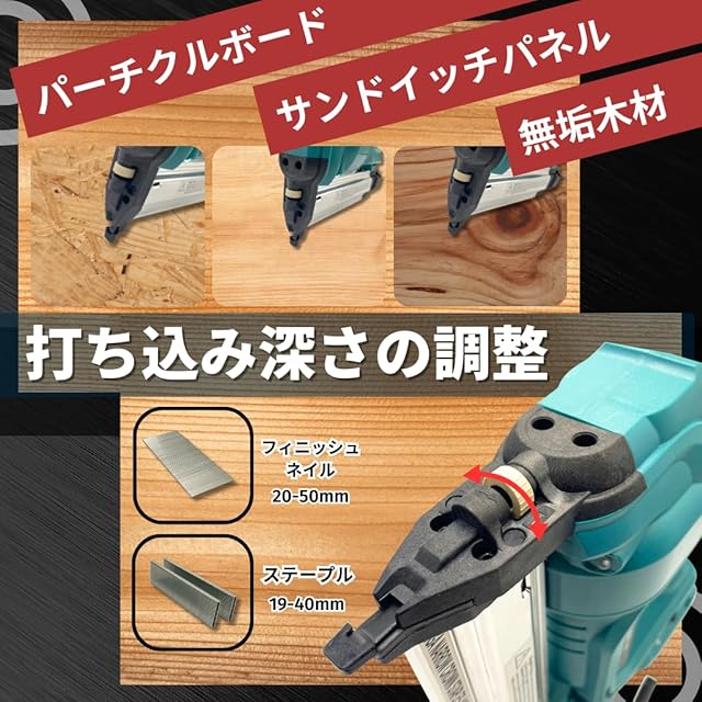 ✅【プロフェッショナル仕様の性能】フィニッシュネイル(18ゲージ/20-50mm)とステープル(K419-K440/19-40mm)の両対応。単発/連続モード切替と打ち込み深さ調整機能で、DIYからプロユースまで幅広い作業に対応可能です。