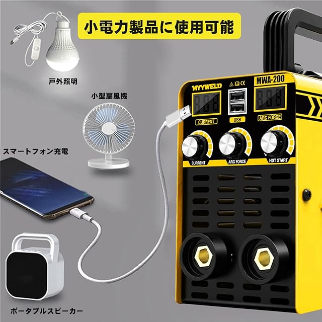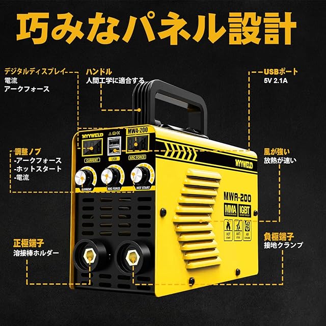 MYYWELD 溶接機 アーク溶接 MWA-200 100V 手棒溶接 ARC溶接 直流インバーター 超軽量 手軽に移動が可能 家庭用 【日本語説明書】小さなDIY 初心者に適し