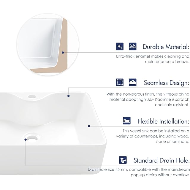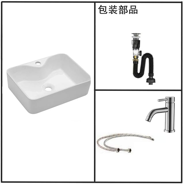 【排水セット付き】 洗面ボウル 洗面台 おしゃれ 陶器 豪華 手洗器 セット 手洗い器シンプル 置き型 長角型 洗面器 深型 (40*30*13cm)