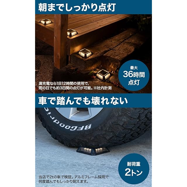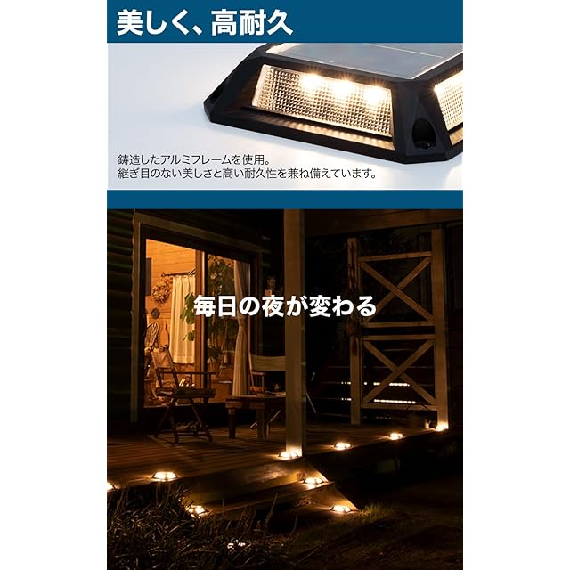 【12灯の暖色LED】電球色に近い温かい色味の明かりで、外構照明として安全/防犯対策に役立ちます。