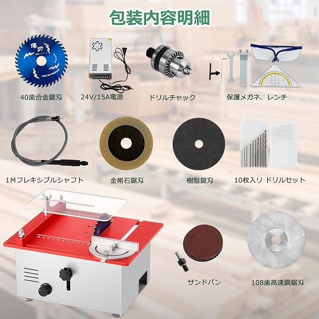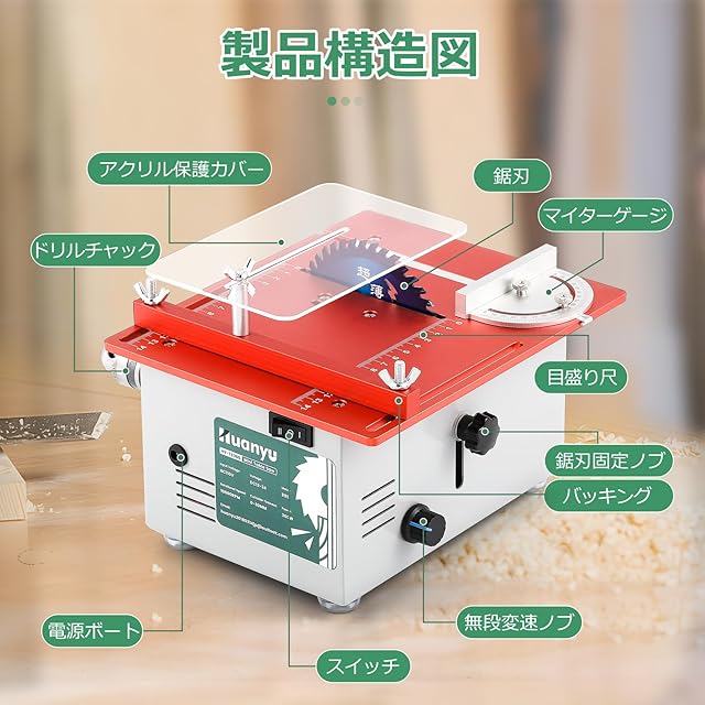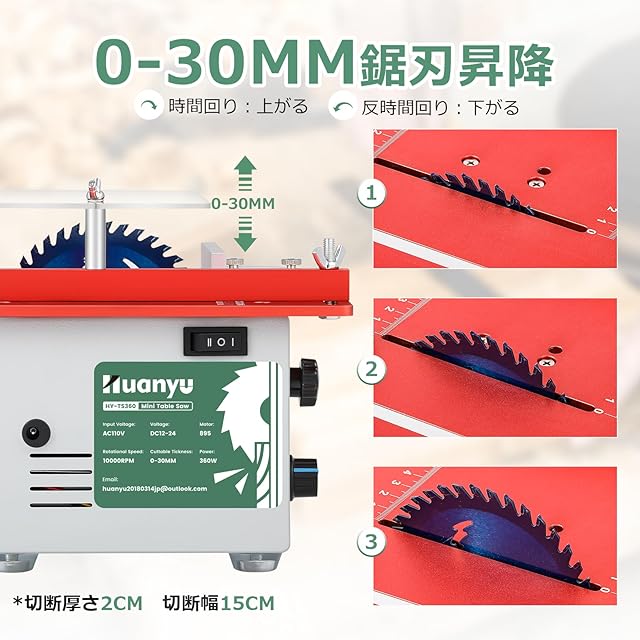 Huanyu テーブルソー 360W 卓上テーブルソー 切断/研磨 ミニテーブルソー 0-30MM鋸刃昇降 無段変速 10000RPM ダブルモーター 0-180°角度調節 鋸刃4枚付き 木材/基板/アクリル/金属用 小型DIY 木工用 日本語説明書付き