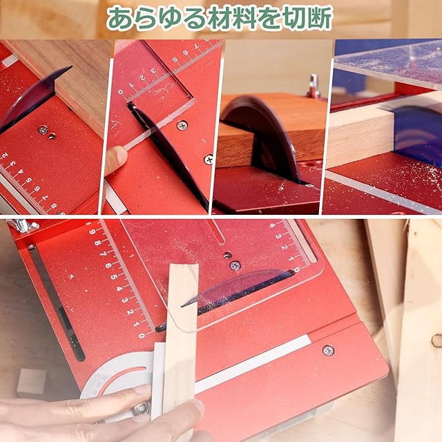 【小型で収納便利】(本体サイズ245*200*135mm)アルミニウムパネル設計で、鋸刃は中身に隠して収納でき、場所を取らない、家庭用にふさわしいコンパクトなたテーブルソーです。