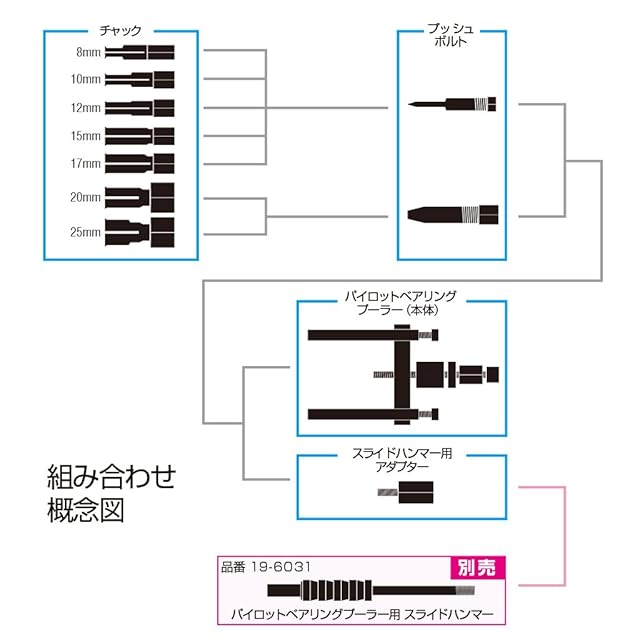 (STRAIGHT/ストレート) パイロットベアリングプーラーセット 8~25(mm) 19-603